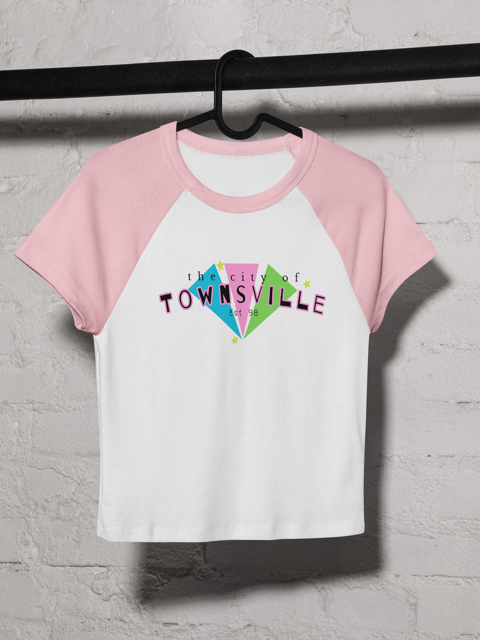 The City of Townsville! Where sugar, spice, and everything nice saved the world daily. Official-style tourism raglan baby tee for the city that proved pint-sized heroes pack the biggest punch. Chemical X not included but highly recommended. Est. 1998. Saving the world before bedtime since the 90s.