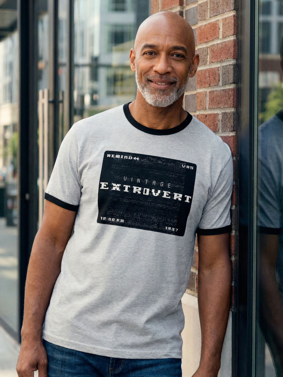 EXTROVERT - Now playing at maximum volume on all channels. Retro VHS-inspired design for those whose social energy is permanently on Play. Never on Pause. Definitely not on Mute. Tracking may vary but enthusiasm never does. Warning: Contains loud social scenes throughout.